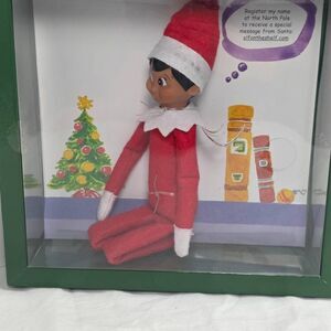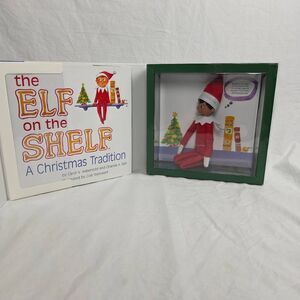 Original Elf on the Shelf set including Scout Elf and hardcover book. Comes in the original display box. Elf in good pre-owned condition with light handling wear. Great for the holiday tradition or replacement set.