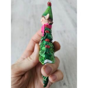 Elf tree girl ornament unique AS IS Xmas green glitter striped