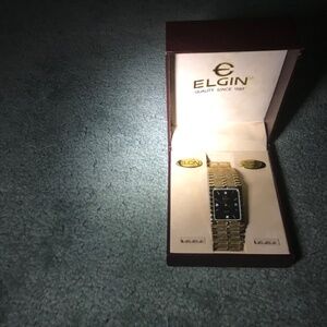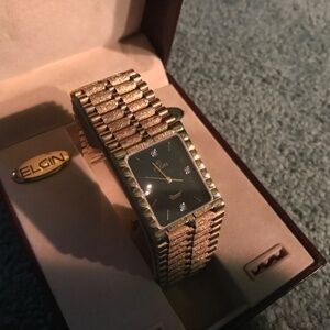Elgin Black Dial Diamond Marker Quartz Watch. FM116-017. Purchased March 18, 1995. Original box and instructions. Needs battery.