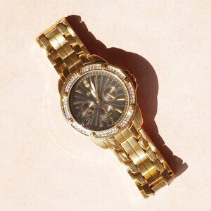 Elgin FG341 Men’s Gold Watch w/ Crystal Bezel
