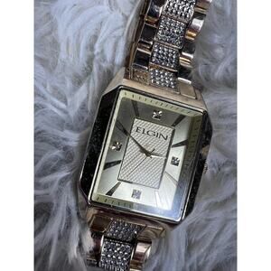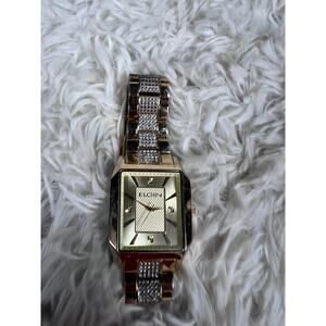 Elgin Rectangular Quartz Watch Gold Tone Crystal Bracelet Japan Movt FG754ST