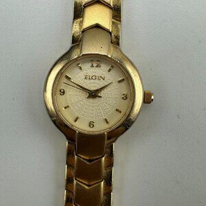 Elgin Watch Women Gold Tone Round 21MM Dial New Battery 7 Inch