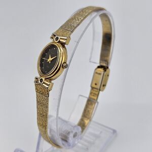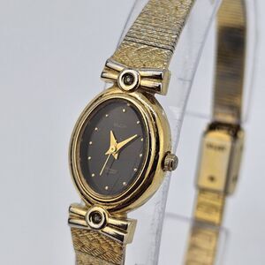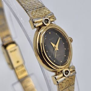 Elgin Women's Watch 17MM Black Dial Gold Bracelet Bands Up to 7.5" New Battery
