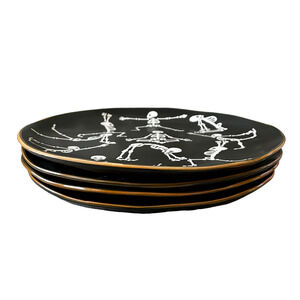 Eli + Ana Halloween Skeleton Namaste Yoga Dinner Plates 11" NEW Set Of 4