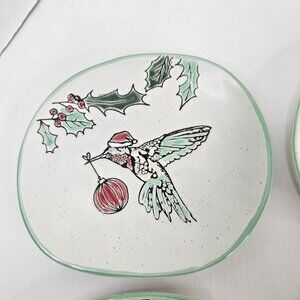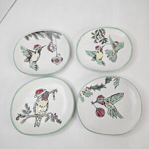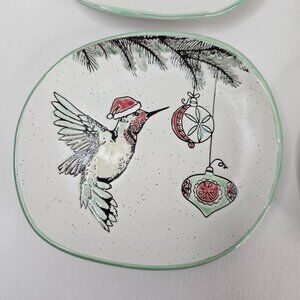 Eli + Ana Holiday Hummingbird 6 Inch Appy Plate Appetizer Ceramic Lot of 4