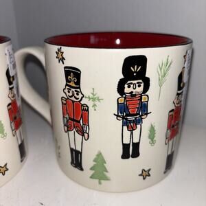 Eli & Ana Nutcracker Mugs Set of 2 Holiday Christmas Tree Coffee Tea Mugs NEW