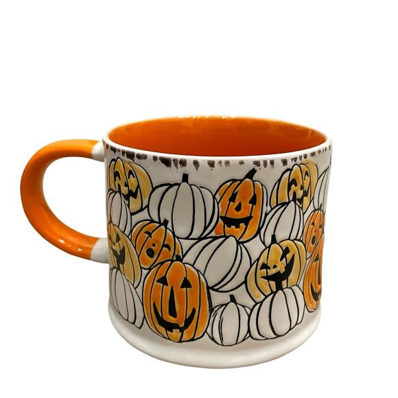 ELI + ANA Halloween PUMPKIN PATCH Ceramic Mug Orange & White New