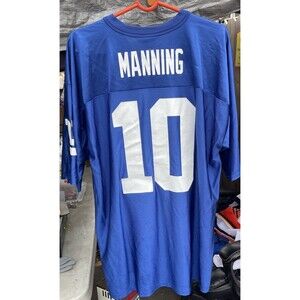 Show your support for the New York Giants with this Eli Manning #10 jersey. Made from high-quality materials, this jersey is perfect for any football fan. It features the team's iconic blue color and is available in a men's XL size.
