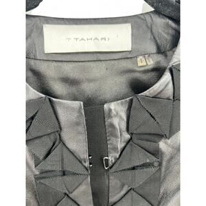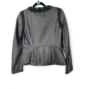 Eli Tahari | S | Jacket Blazer Leather Lamb Black Ribbon Detail Cropped Women