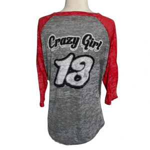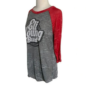 Eli Young Band L gray/red burn out 3/4 sleeve top