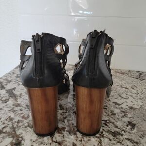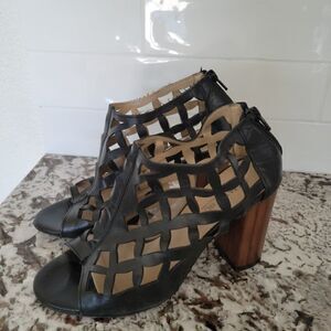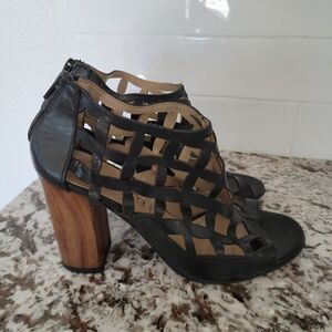 Made in Italy Most beautiful wood grain heel! Zips at heel Open toe Excellent condition!