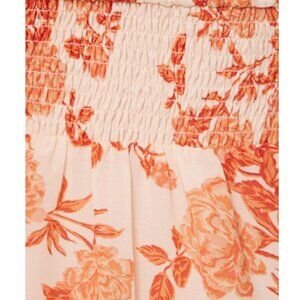 This is a feminine short sleeve mini dress with a cinched waist and a flowy skirt.
