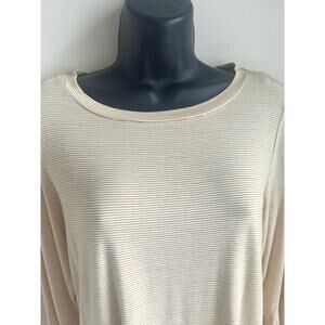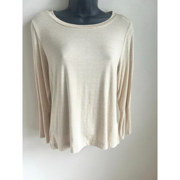 This top measures 17.5 across pit to pit and 21.75 (21 3/4) inches from shoulder to hem. This top is in excellent condition.
