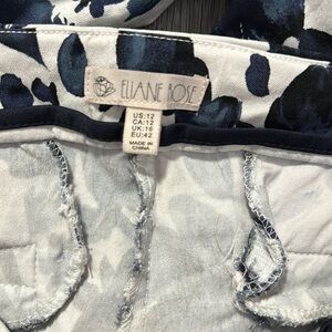 Eliane Rose Elastic Waistband Blue Floral Stretchy Capri Pants Size 12