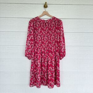 Eliane Rose Floral Print Smocked Long Sleeve Dress Red M