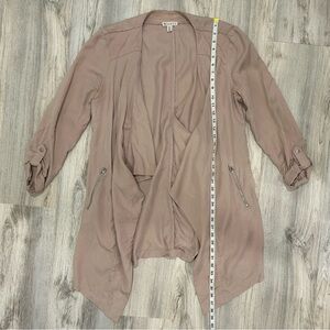 Eliane Rose Open Blazer Jacket Tencel Beige Pink Roll Tab 3/4 Sleeve Size L