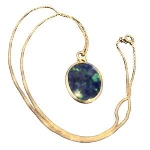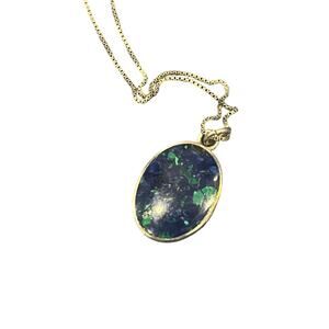 Eliat Cabochon Stone Pendant on 18" Sterling Silver Chain Vintage Necklace