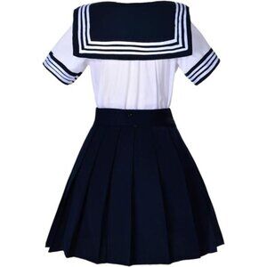 Elibelle Japanese School Girls Short Sleeve Uniform Sailor Navy Blue Pleated