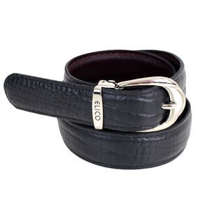 Elico CROCO EMBOSSED BLACK GENUINE LEATHER 1.25"Wd CASUAL DRESS BELT Sz L/XL (P9