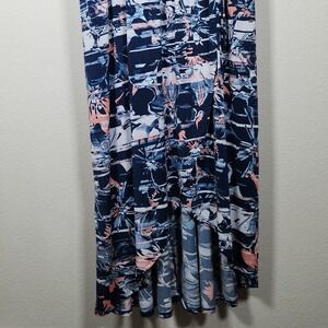 Elie Mclarty Women's 1X Wrap Maxi Dress Blue Coral Floral V-Neck Hi Low Hem