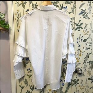 Elegant button down with cascading ruffles. Perfect for a sophisticated look.