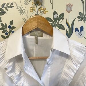 Elie Saab Elegant White Ruffle Button Down Shirt Made in ITALY