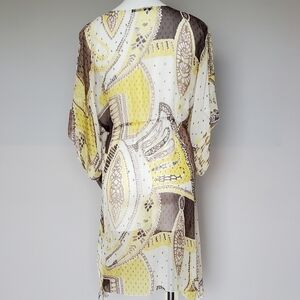 Elie TAHARI 100% Silk Tunic Caftan Butter Yellow Brown Swim Coverup