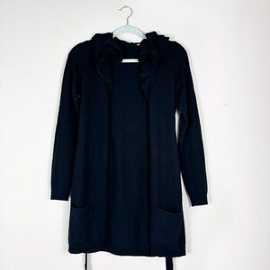 Elie Tahari 100% Cashmere Black Open Front Knit Belted Cardigan size S