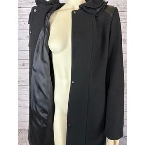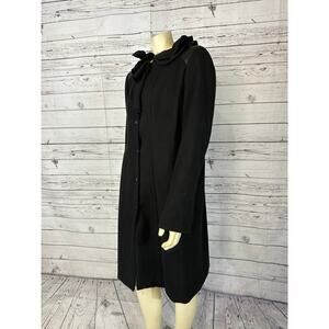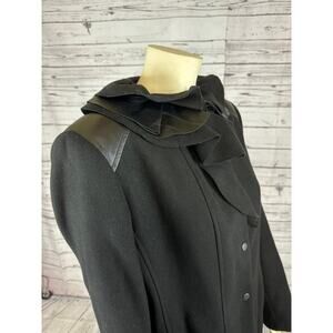 Elie Tahari 100% Wool Black Fitted Layered Leather Ruffle Collar Coat size XL