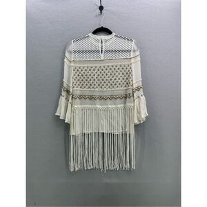 Elie Tahari Aislin Beaded Fringe-Hem Silk Tunic Blouse Size XS