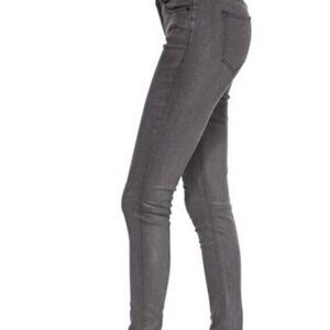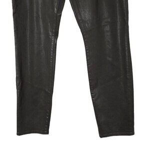 Elie Tahari Azella Leather -Coated Jeans Brown Size 14. Skinny Ankle Zip, Low Rise, Skinny leg. This jean has a skinny leg and a coating that suggests subtle shellacking. Button Fly and belt loops. Cotton/Spandex Blend. Dry Clean Only.