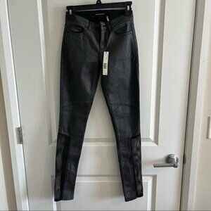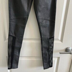 Wax Coated denim and mesh inserts at the ankle create updated Moto style on a mid-rise Jean with paneled construction.