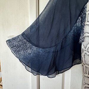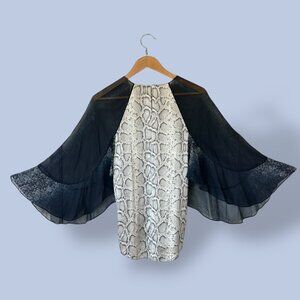 Elie Tahari Batwing Reptile Print Blouse Navy Sheer Flowy Wimsigoth Size Medium