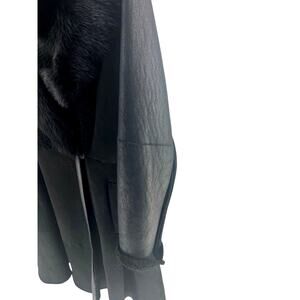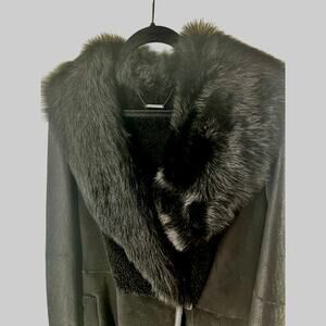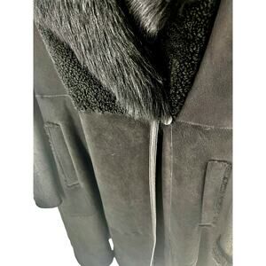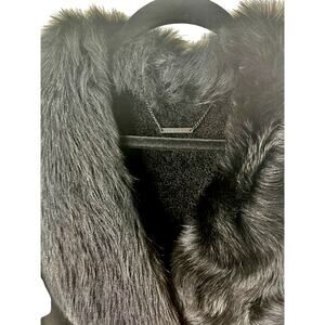 Elie Tahari Black Genuine Shearling Fur Collar Long Coat L
