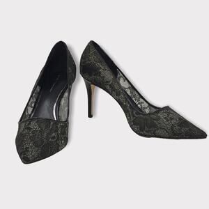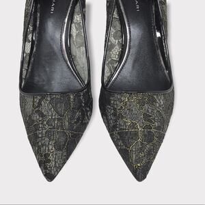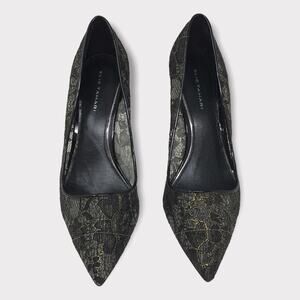 Elie Tahari Black & Gold Lace Patent Leather Trim Pointed Heels Pumps 9/9.5