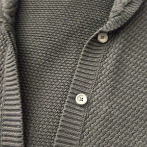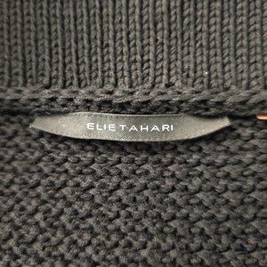 Beautiful, excellent pre-loved condition heavy-weight knit cardigan by Elie Tahari, size small. I have worn and loved this cardigan several times, but just don't find myself wearing it anymore. It is a lovely, soft but thick knit made of 30% silk and 70% cotton. All original buttons down front, no pulls/runs or piling. Has only been dry cleaned.