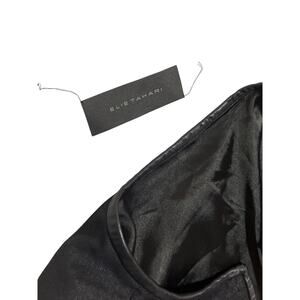 Elie Tahari Black Linen Blend Sheep Leather Trim Women’s Large Long Jacket