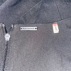 Elie Tahari Black Linen Exposed Zipper Mesh Short Sleeve Shift Dress. Like new condition. Size 12. Front, Back, under sleeves: 70% linen 27% viscose rayon 3% elastane. Shoulders, upper sleeves, neck trim: 70% polyamide 30% elastane. Hem: 100% polyester. Lining: 88% polyester 12% elastane. Back zipper.