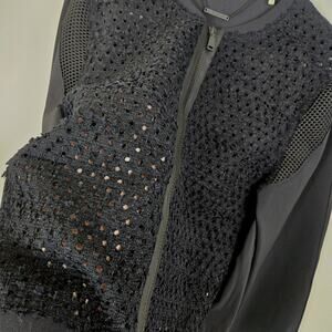 Elie Tahari Black Mesh Front & Trim Zip Front Blazer Moto Grunge Punk MEDIUM