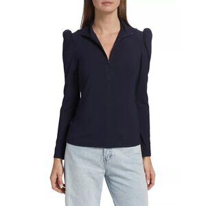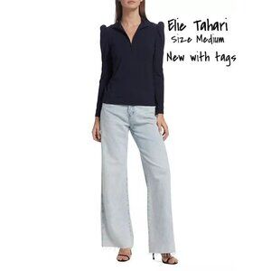 Elie Tahari Black Mock Turtleneck Top Padded Shoulders, Medium, New with Tag