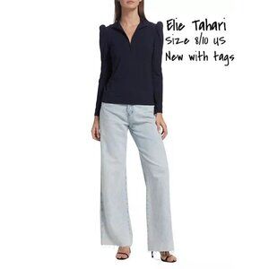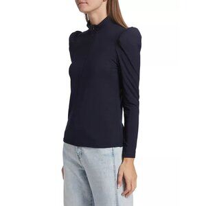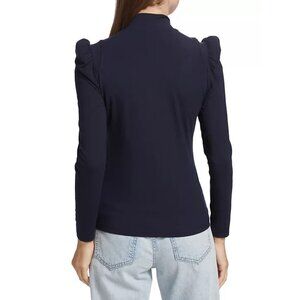 Elie Tahari Black Mock Turtleneck Zip Top with Padded Shoulders - Small, New