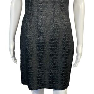 Elie Tahari Black Retile Embossed Stretch Sleeveless LBD Sheath Dress Sz 2
