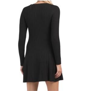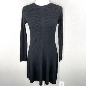 Elie Tahari Black Ribbed Mini Fit and Flare Sweater Dress NWT Small