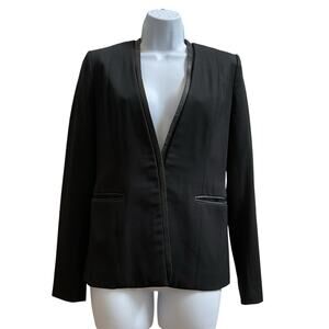 Elie Tahari Black Virgin Wool Lamb Leather Blend Pocket Blazer Size Small