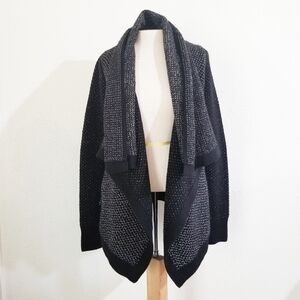 Elie Tahari Black Waterfall Wool Cardigan Small