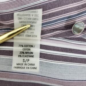 Elie Tahari Blouse Ruffled Front Cuffs S Button down Purple Multicolor Striped