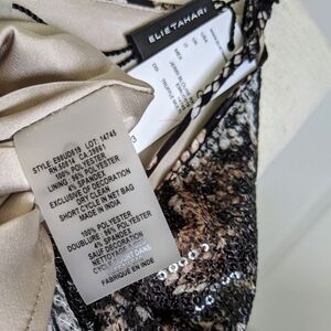 Elie Tahari Blouse Sleeveless Sequin Snake Print Draped Neck Truffle Black L NWT
