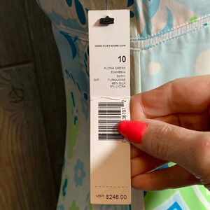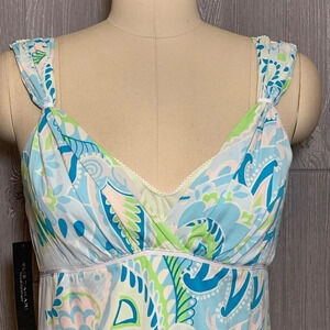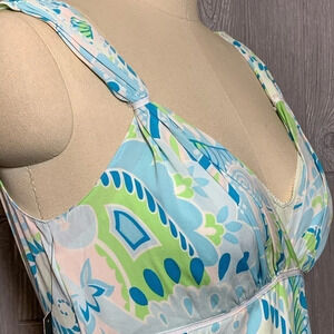 Elie Tahari Blue & Green Print Silk Dress 10 Fits like 6 NWT