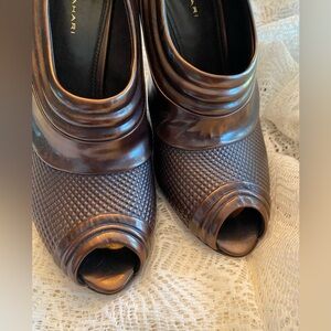 These bronze beauties are a great addition to any wardrobe + Tahari’s quality & craftsmanship to really take them to the next level. A few small marks on the heels, but they blend in well when on (happy to provide more detailed pictures). A bit of color fluctuation on the sides, but they’ve still got a ton of life left in them & are truly gorgeous. Comfy & lightweight!