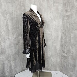 Elie Tahari Brown Burnout Velvet Silk Blend Dress Womens M Boho Gothic Cocktail